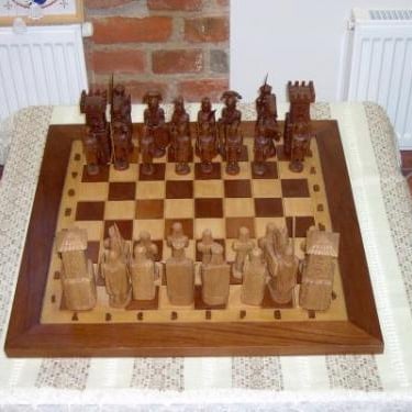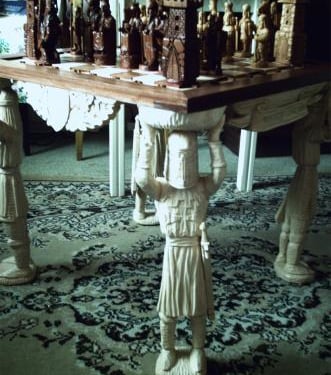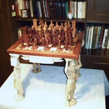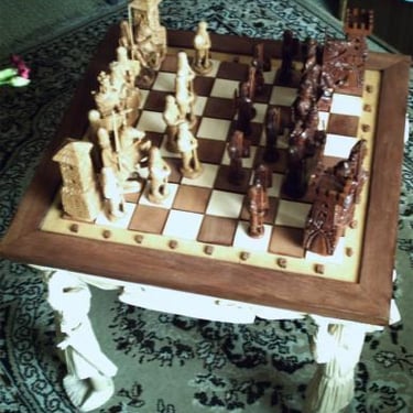 Šios šachmatų figūrėlėse, išdrožtos iš medžio, atsiskleidžia ne tik žaidimo strategiją, bet ir meninę kūrybą. Kiekviena figūrėlė išsiskiria savo unikaliu dizainu ir detalių precizija. Medinė lenta su subtiliais ornamentais suteikia žaidimui elegantišką aurą, o žaidėjams leidžia pasinerti į strateginių mūšių pasaulį. Šie šachmatai ne tik puiki pramoga, bet ir estetiškai patrauklus objektas, tinkantis bet kuriam interjerui.